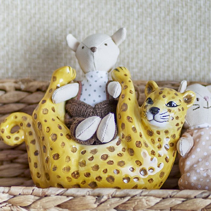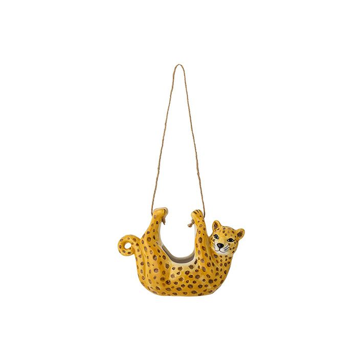 チーターがぶら下がっているような、他にはないユニークなデザインのハンギングポット。