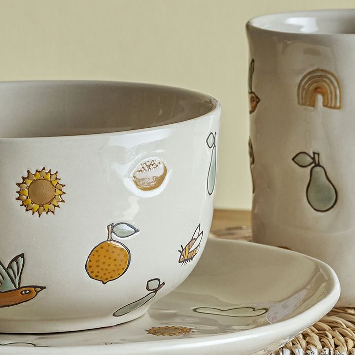 キノコや鳥などの模様が可愛く描かれたテーブルウェアセット。