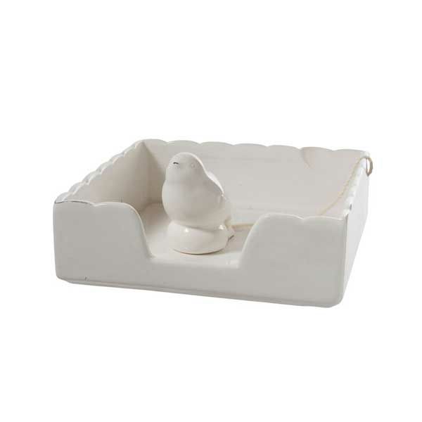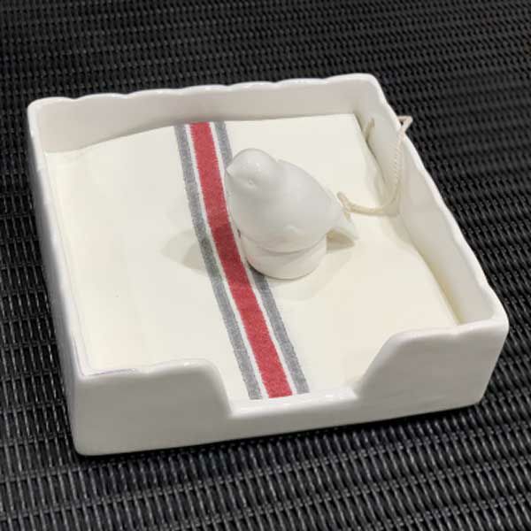 ペーパーナプキンを使いやすく、おしゃれに収納できるナプキンホルダー。17cm角のナプキンが収納できます。小鳥モチーフの飾りがしっかりとナプキンをおさえてくれます。