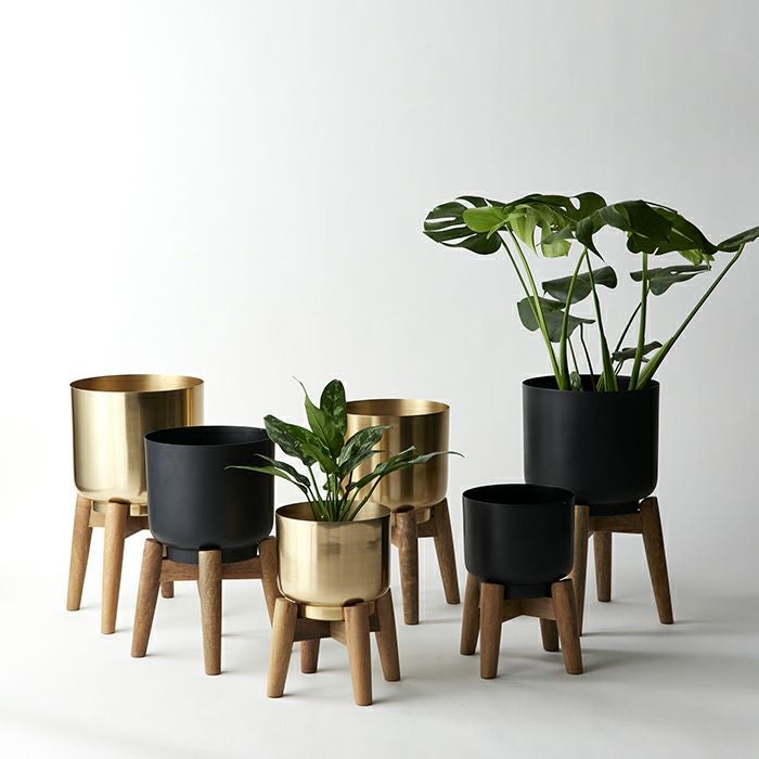 アルミプランター ウィズウッドスタンド ブラック H41.5
