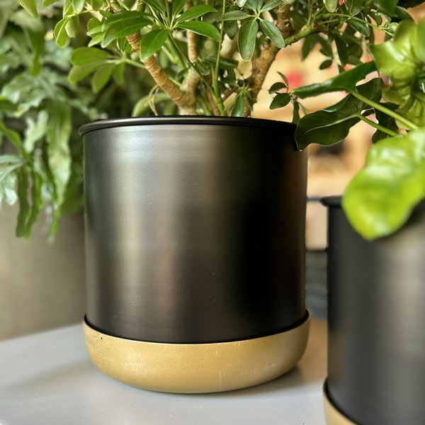 ゴールドのソーサーがアクセントのシンプルなフォルムの鉢カバー。