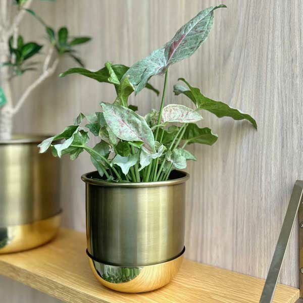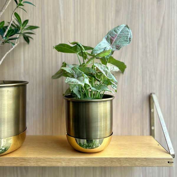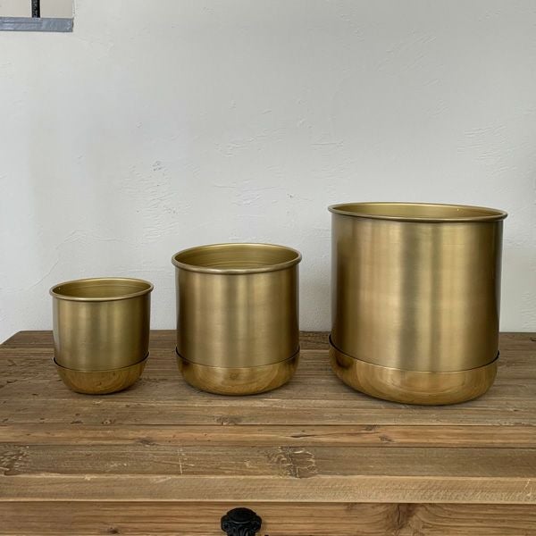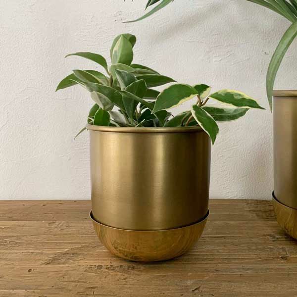 ゴールドのソーサーがアクセントのシンプルなフォルムの鉢カバー。シックなカラーでグリーンがよく映えます。鉢カバーだけでなく、小物入れとしても。ポットとソーサーが取り外し可能なので別々でもお使いいただけます。サイズはΦ12、Φ16、Φ21cmの3タイプございます。