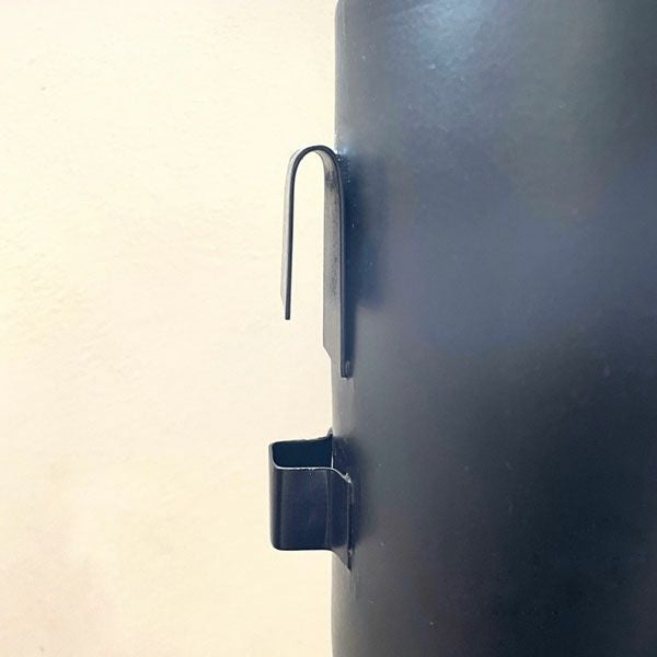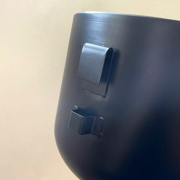 マットな質感のブラックカラーの鉢カバー。シンプルなデザインで植物がよく映えます。ポット本体に元々フックがついており、付属品のブラケットを壁に取り付けて壁掛け用ポットとしてお使いいただけます。