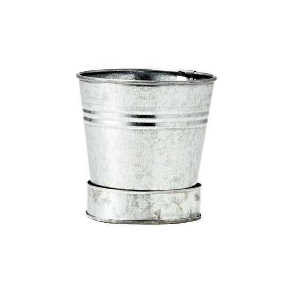 ブリキ製のソーサー付きのポット。どんなインテリアにも合わせやすく、グリーンがよく映えます。サイズはΦ10、Φ11、Φ13cmの3タイプございます。