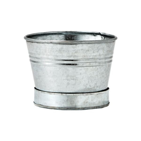 ブリキ製のソーサー付きのポット。どんなインテリアにも合わせやすく、グリーンがよく映えます。サイズはΦ10、Φ11、Φ13cmの3タイプございます。