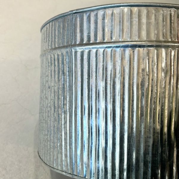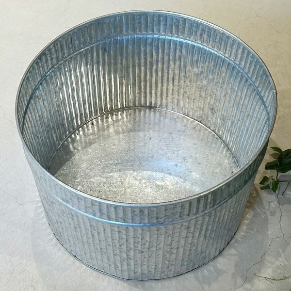 ブリキ製の鉢カバー。どんなインテリアにも合わせやすく、グリーンがよく映えます。鉢カバーとしてはもちろん、スリッパや小物の収納など様々にお使いいただけます。サイズはΦ28、Φ38、Φ47cmの3タイプございます。