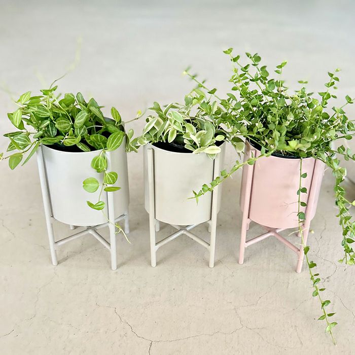 鉢カバーと同じカラーのスタンドが付属していて、高さを変えて3WAYで使えます。