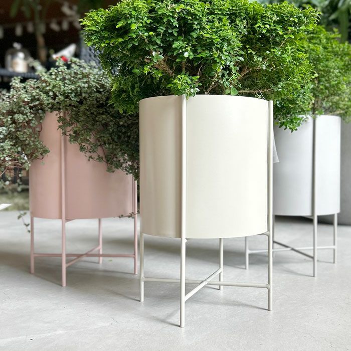 鉢カバーと同じカラーのスタンドが付属していて、高さを変えて3WAYで使えます。