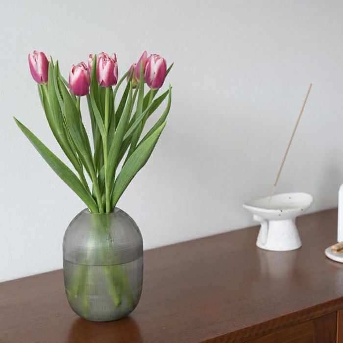 コロンとしたフォルムが印象的なガラスベース。