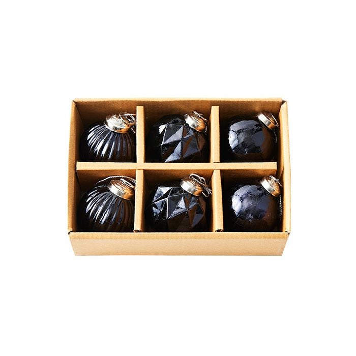 デザインの異なる3種類の組合せが美しいブラックカラーのガラスボールオーナメントです。