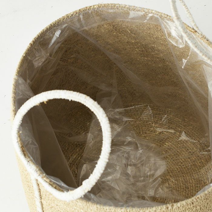 内側がビニールがで覆われているため、濡れたものを入れたり、植物の水やりの際も気兼ねなくお使いいただけます。