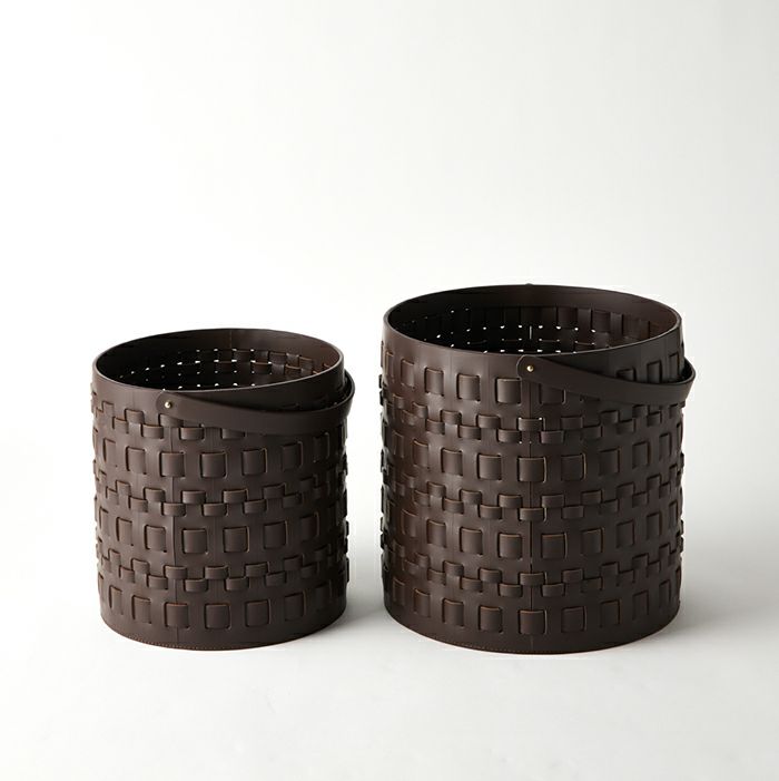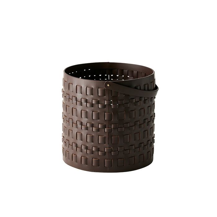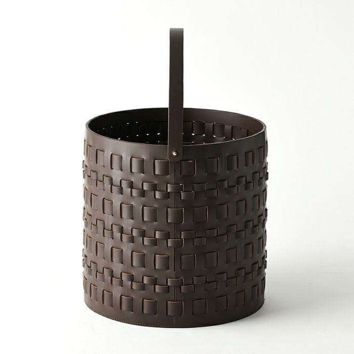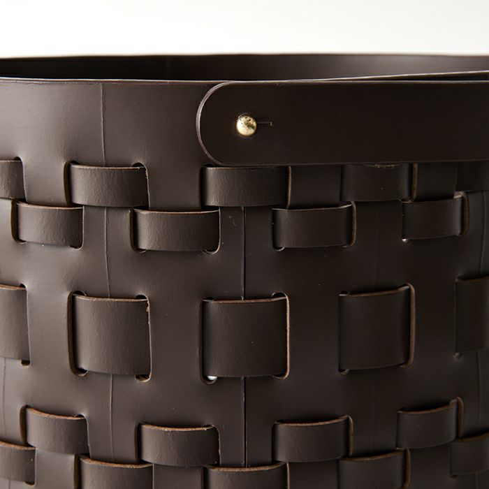 ブラウンの網目の印象がモダンなレザーバスケットです。