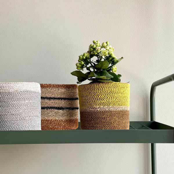 シーグラスバスケット ウィズフリンジ イエロー&ナチュラル