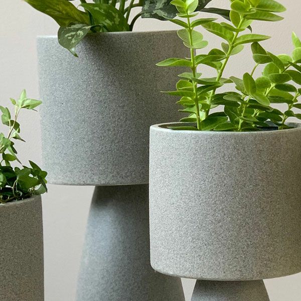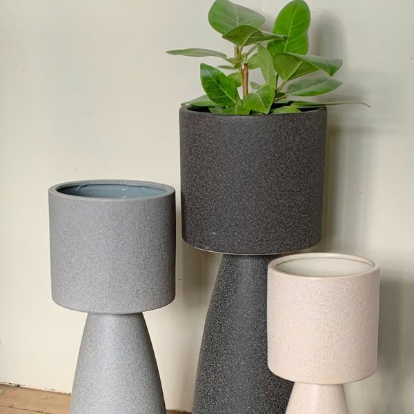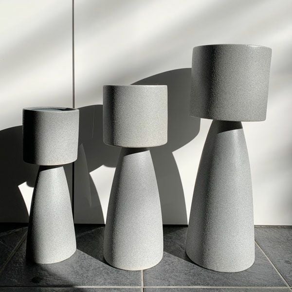 ユニークな形が特徴的なベース。少しくすんだカラーでインテリアによく馴染みます。底穴がないので花瓶として使ったり、鉢カバーとしてグリーンと合わせたりと様々にお使いいただけます。カラーはクリーム、グレー、ブラックの3色よりお選びください。サイズバリエーションは3種類です。