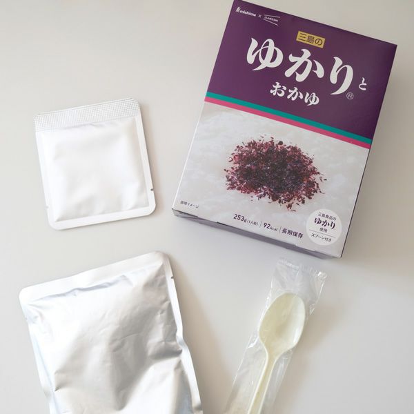 人気ふりかけ「ゆかり」と、和風出汁のおかゆがセットになりました。
