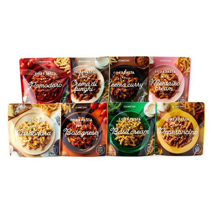 王道の味から珍しい味まで取り揃えた「そのままPASTA」全8種類を1箱に詰め合わせました。