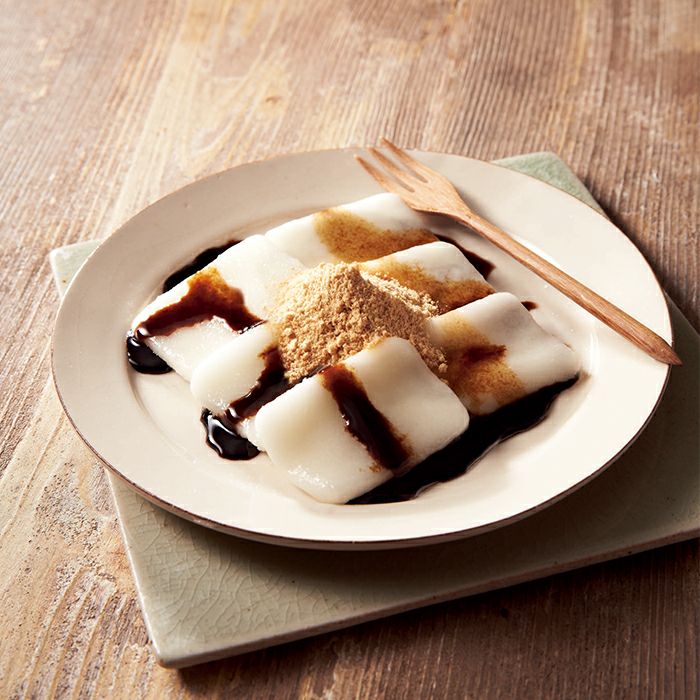 (3)おもち全体に水がしみこんだら、おもちをうつし、添付のきな粉と黒みつをかけてお召し上がりください。