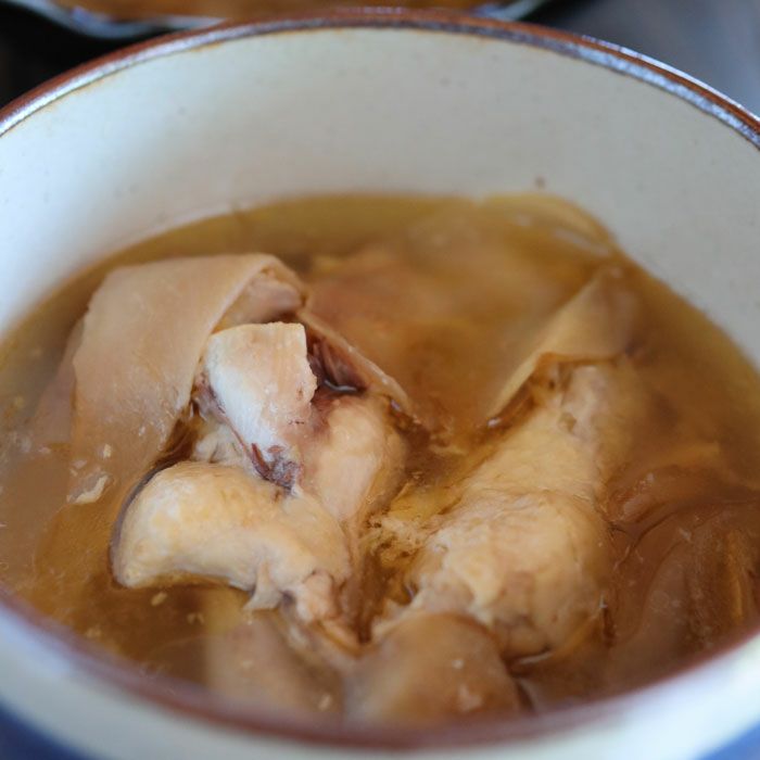 台湾で親しまれている鶏肉と生姜をお酒で煮込んだスープ「マーヨージー」です。