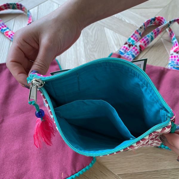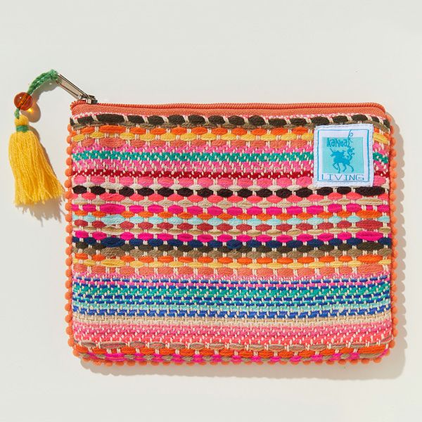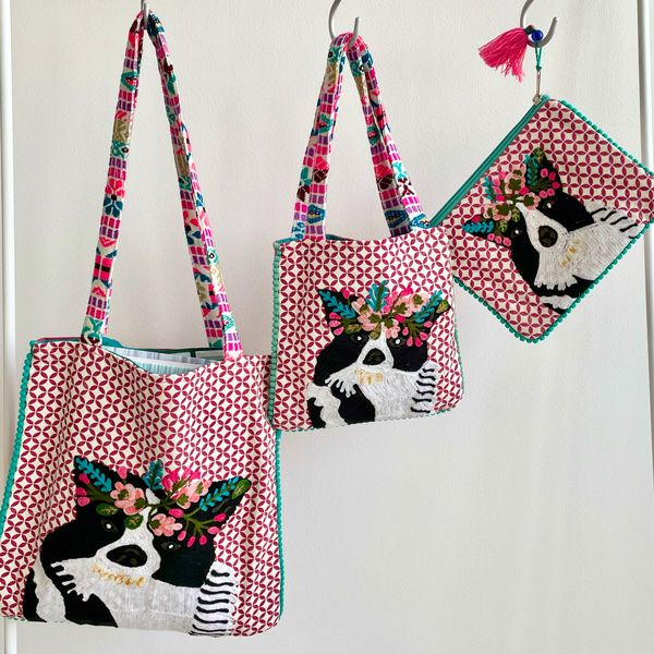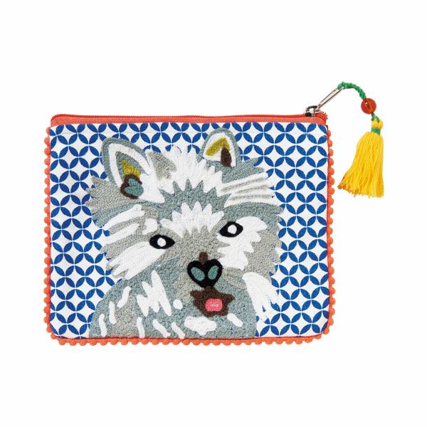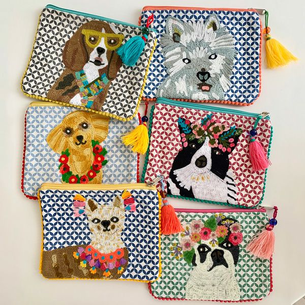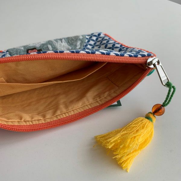 丁寧なハンドメイドの刺繍がかわいいポーチ。