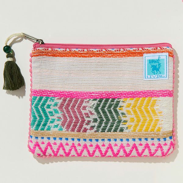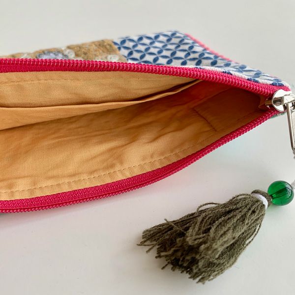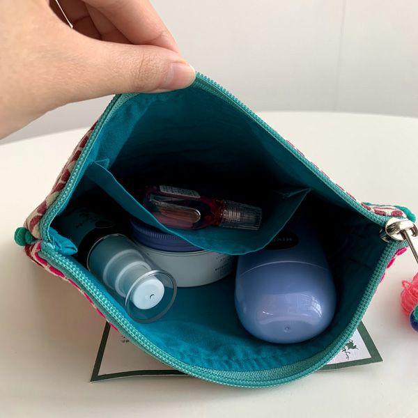 丁寧なハンドメイドの刺繍がかわいいポーチ。