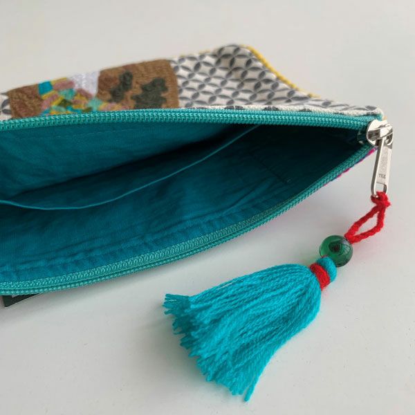 丁寧なハンドメイドの刺繍がかわいいポーチ。