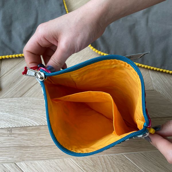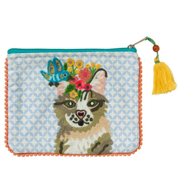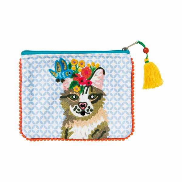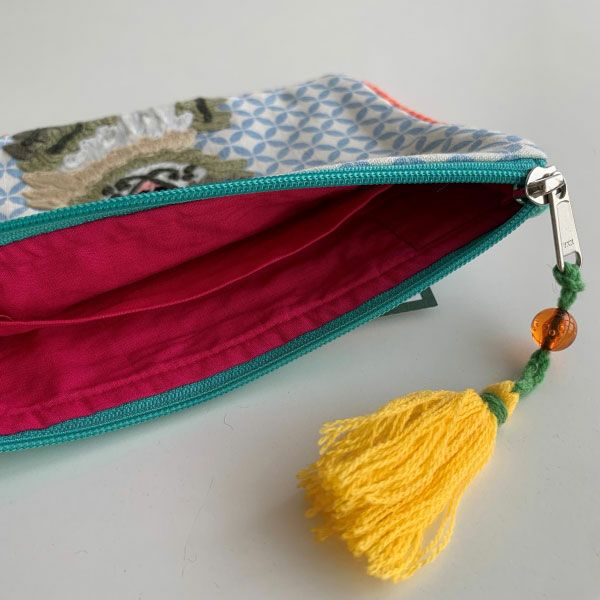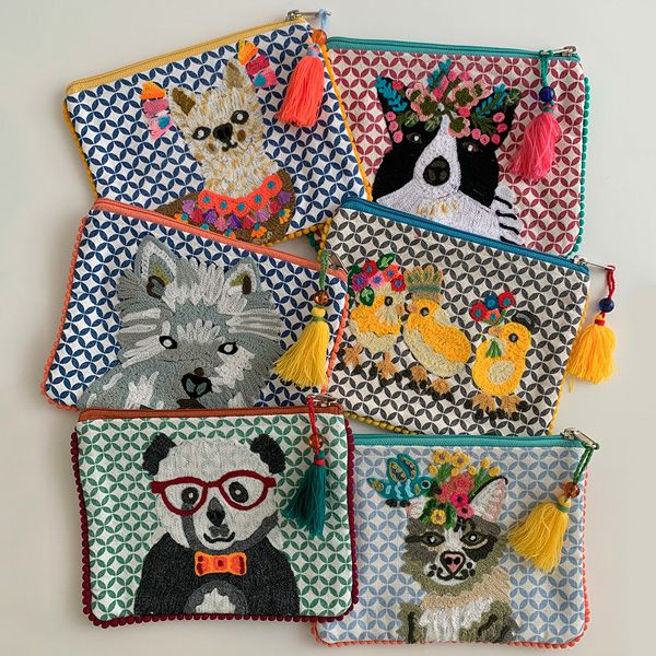 丁寧なハンドメイドの刺繍がかわいいポーチ。