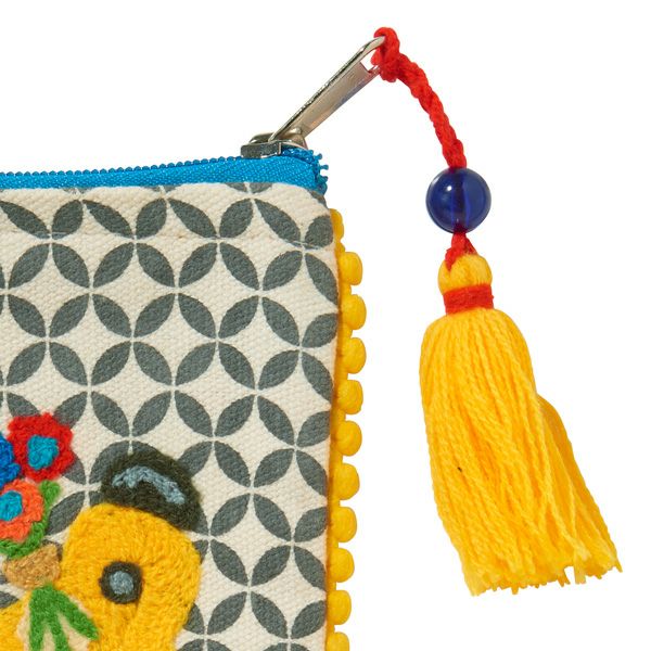 丁寧なハンドメイドの刺繍がかわいいポーチ。