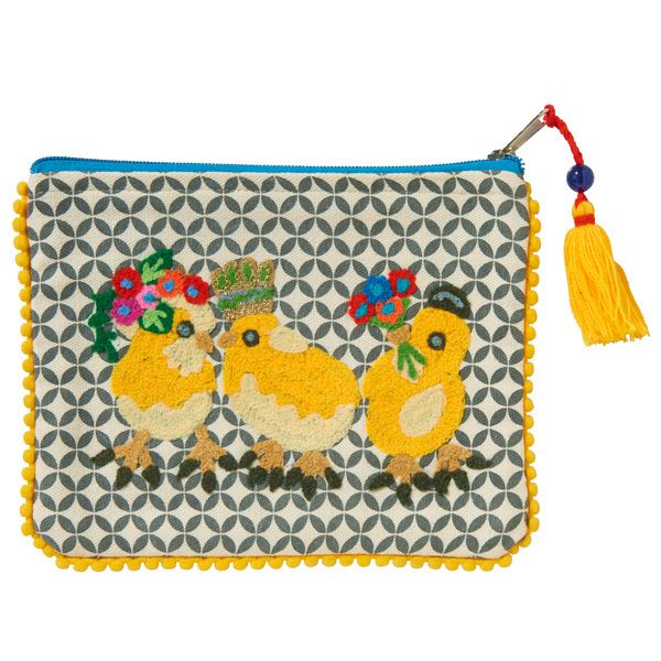 3匹のおしゃれなヒヨコが描かれた可愛らしいデザイン。