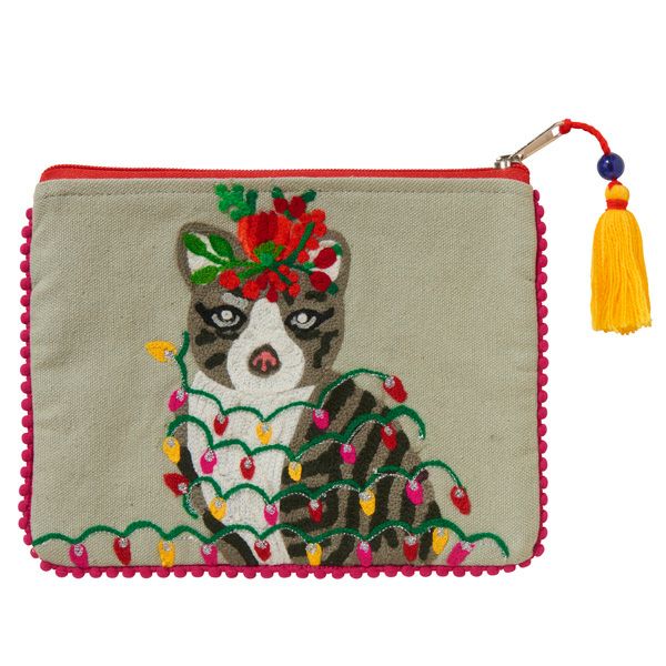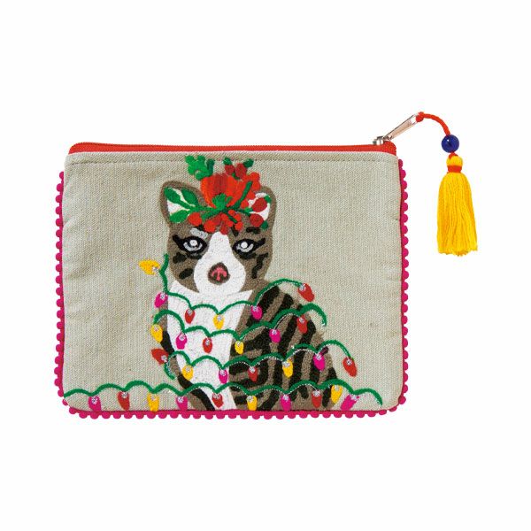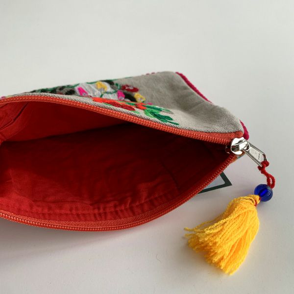 丁寧なハンドメイドの刺繍がかわいいポーチ。