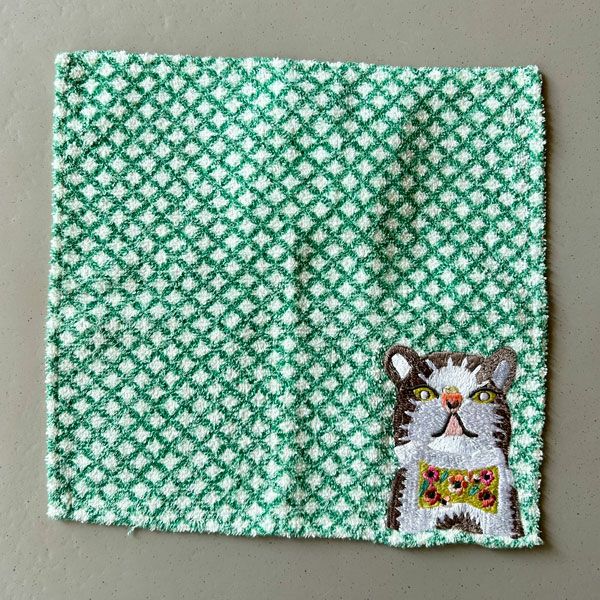 丁寧なハンドメイドの刺繍がかわいいタオルハンカチ。