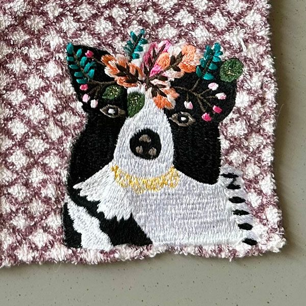 丁寧なハンドメイドの刺繍がかわいいタオルハンカチ。