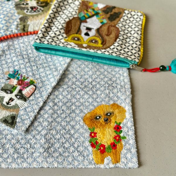 丁寧なハンドメイドの刺繍がかわいいタオルハンカチ。
