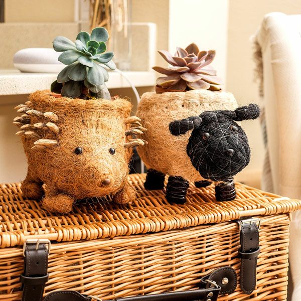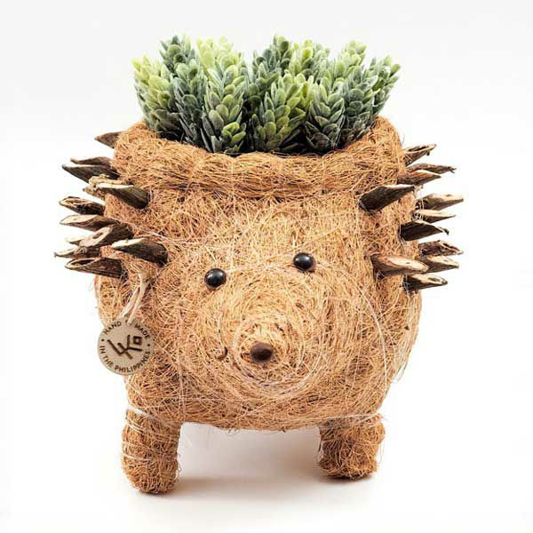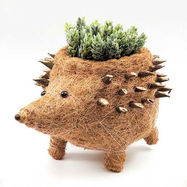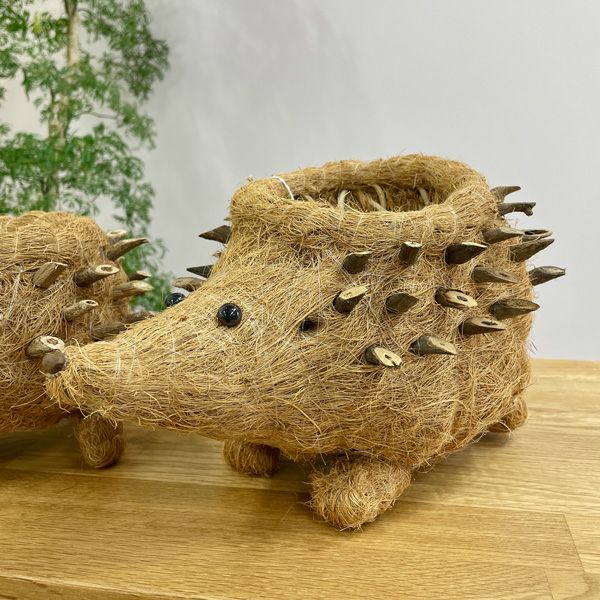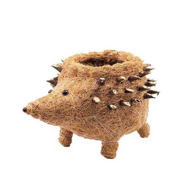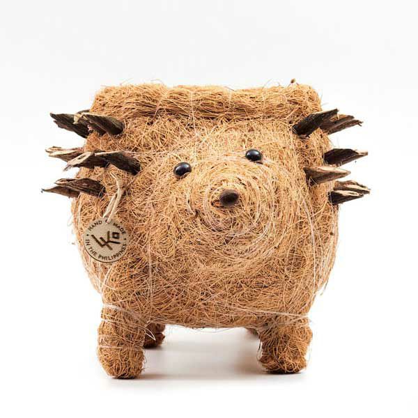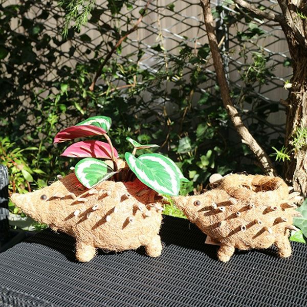 ココヤシの木でつくられたアニマルモチーフのプランター。かわいらしいハリネズミのデザインが特徴的です。植物をいれるだけでなく、小物入れやインテリアのアクセントとしてもお使いいただけます。