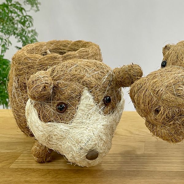 ココヤシの木でつくられたアニマルモチーフのプランター。かわいらしいコーギーのデザインが特徴的です。植物をいれるだけでなく、小物入れやインテリアのアクセントとしてもお使いいただけます。