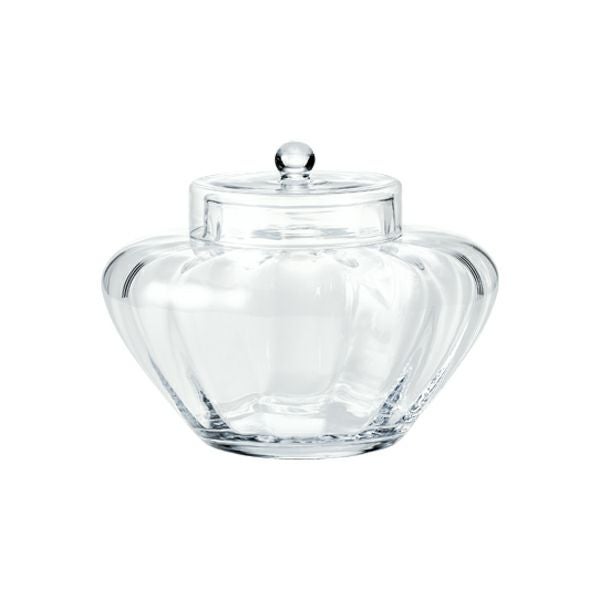 ガラスコレクションのカボチャ型ポットです。食卓やキッチンでの使用はもちろん、インテリアのアクセントとしてもおすすめ。ユニークなカボチャ型をしたガラスの、緩やかな曲線がとても綺麗で目を惹きます。ポットには蓋がついているので、パーティーでクッキーや飴などのお菓子を入れるのにぴったりです。