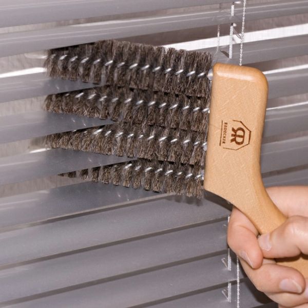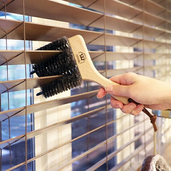 ヤギ毛のブラシが4列ずらっと並んだ不思議なカタチ。ブラインド専用のブラシなのです。すぐにホコリや汚れが溜まってしまうのに、窓から外すことも難しく、お掃除がしにくいブラインド。うっかり手を切ってしまうのも怖いですよね。でもこちらのブラシがあればもう安心。ブラインドを挟んでススーッとスライドさせるだけで、とっても簡単にホコリをとることができます。インテリアを損ねないステキなデザインですので、目に見えるところに置いておけば、気になったときにさっとお掃除できますよ。ありそうでなかったこの形、「かゆい所に手が届く」商品です。