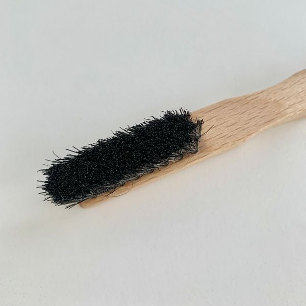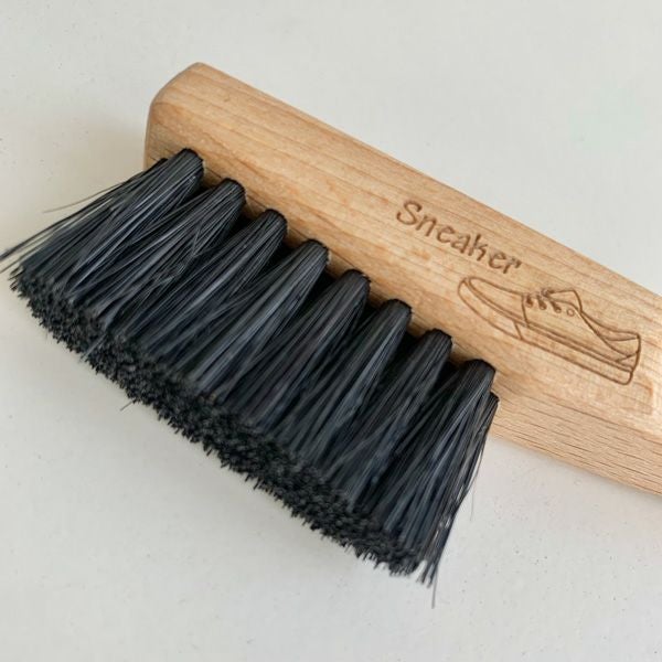 硬く弾力性が高い質感の豚毛でできたブラシは、靴底の汚れ落としにぴったりです。コンパクトなサイズ感で握りやすく使い勝手も抜群。持ち手部分のブナ材はオイルでコーティングされており、手触りがよく手に馴染みます。ワンポイントのスニーカー柄がおしゃれです。