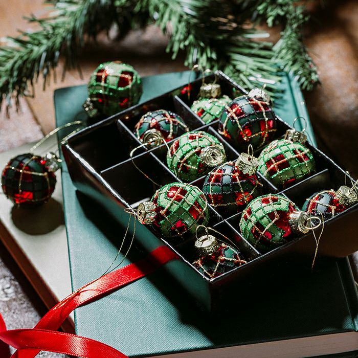 タータンチェック柄のボールオーナメントです。