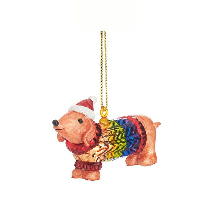 虹色の洋服がかわいいドッグモチーフガラスオーナメント。