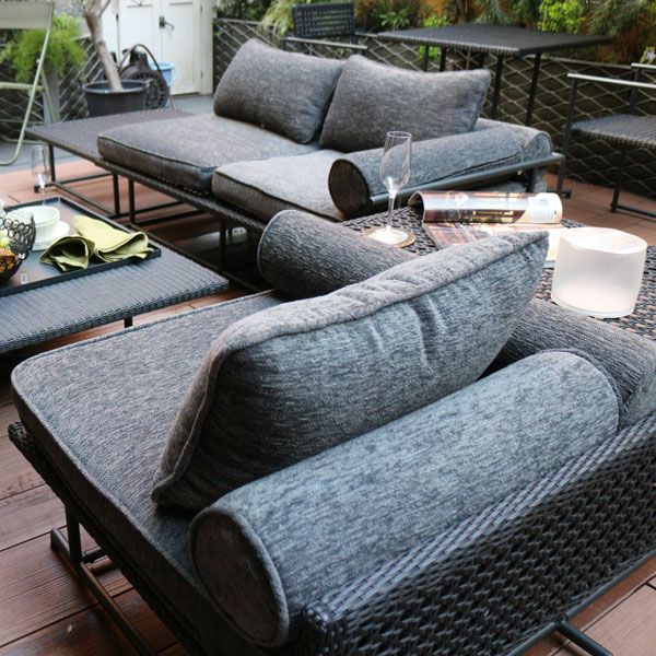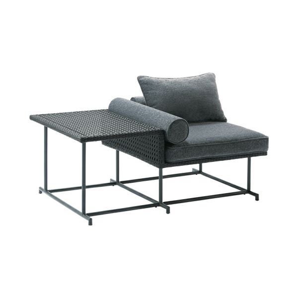 「間と余白のあるアウトドアファニチャー」をコンセプトに、素材やデザインに加え、スケール感も高級感を生み出すものであるととらえ誕生しました。大きなひじ掛け、奥行きのある座面、テーブルの余白スペースなど、広さを感じられる設計を施すことにより、ゆったりと寛いだり、本、グラス、フラワーベースやランプなどを置いたり、用途や空間により多様なシーンを創り出します。