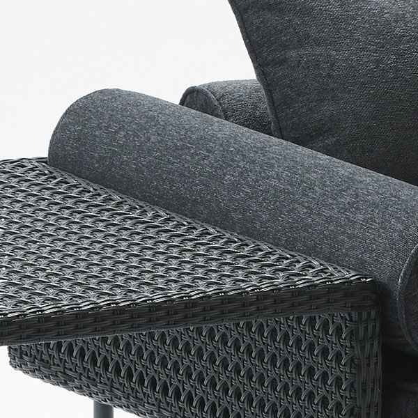 籠目文様に編み上げた人工ラタンのサイドテーブルつきシングルソファ。サイドテーブルはソファと一体型。サイドテーブルのないMA-ソファ・シングルもございます。
