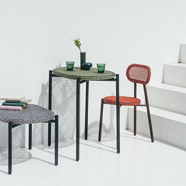PATIO PETITE WA Series“WA Series”は、「輪(WA)」が軌跡を描くように展開するシリーズです。丸みを帯びたフォルムはあたりも柔らかく、アクセスする方向を選びません。狭小空間にもフィットする直径465mmの円が連なってできる豊かなバリエーションが多様なシーンに対応します。カラフルなラタンと軽やかなスチールフレームが現代的な表情を生み出し、周囲に自然と場をつくりだすファニチャーシリーズです。
