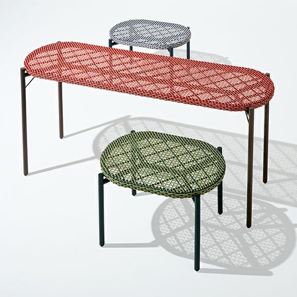“WA Series”は、「輪(WA)」が軌跡を描くように展開するシリーズです。丸みを帯びたフォルムはあたりも柔らかく、アクセスする方向を選びません。狭小空間にもフィットする直径465mmの円が連なってできる豊かなバリエーションが多様なシーンに対応します。カラフルなラタンと軽やかなスチールフレームが現代的な表情を生み出し、周囲に自然と場をつくりだすファニチャーシリーズです。